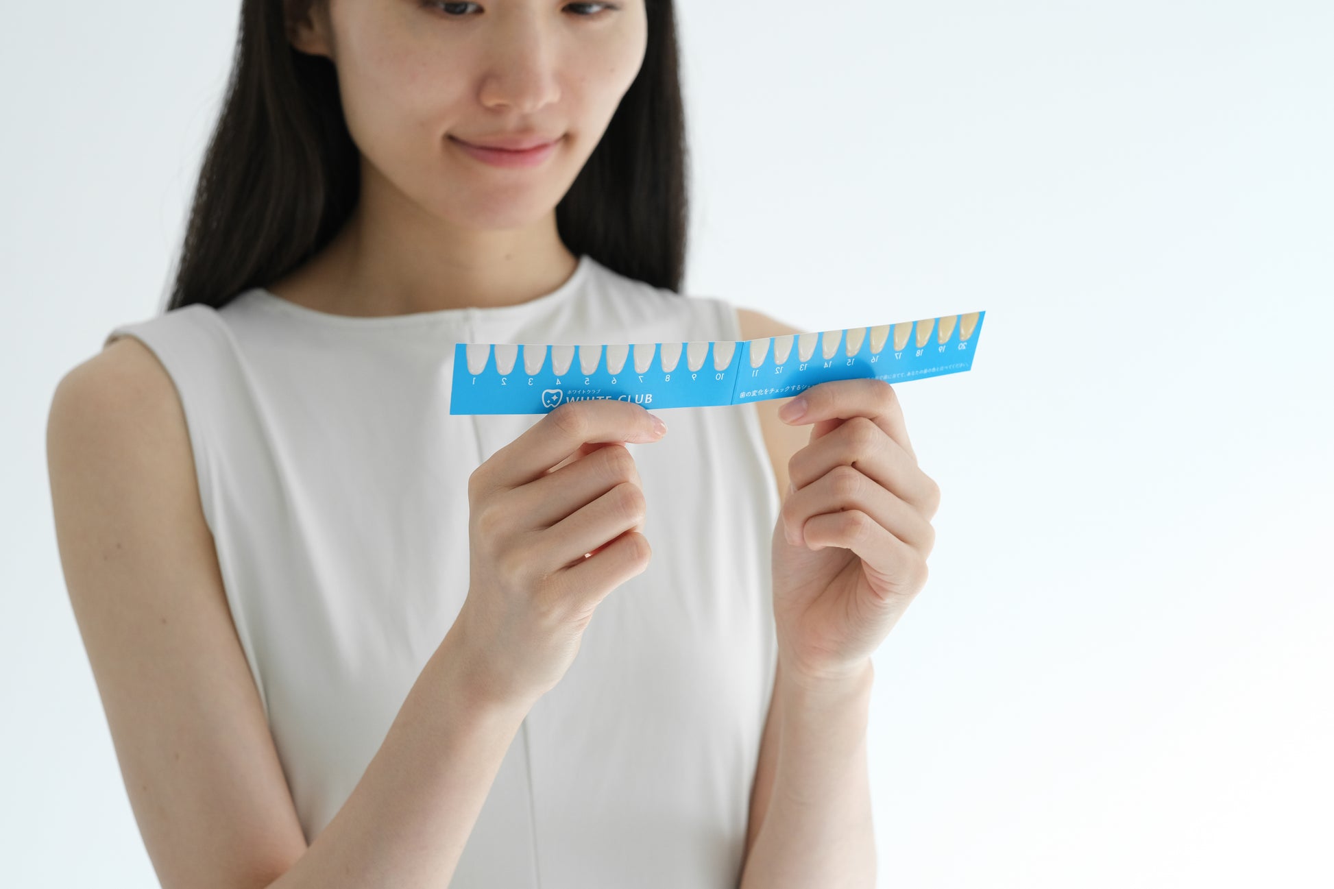 1. 歯をしっかりブラッシングし、シェードガイドで現在の歯の色を確認